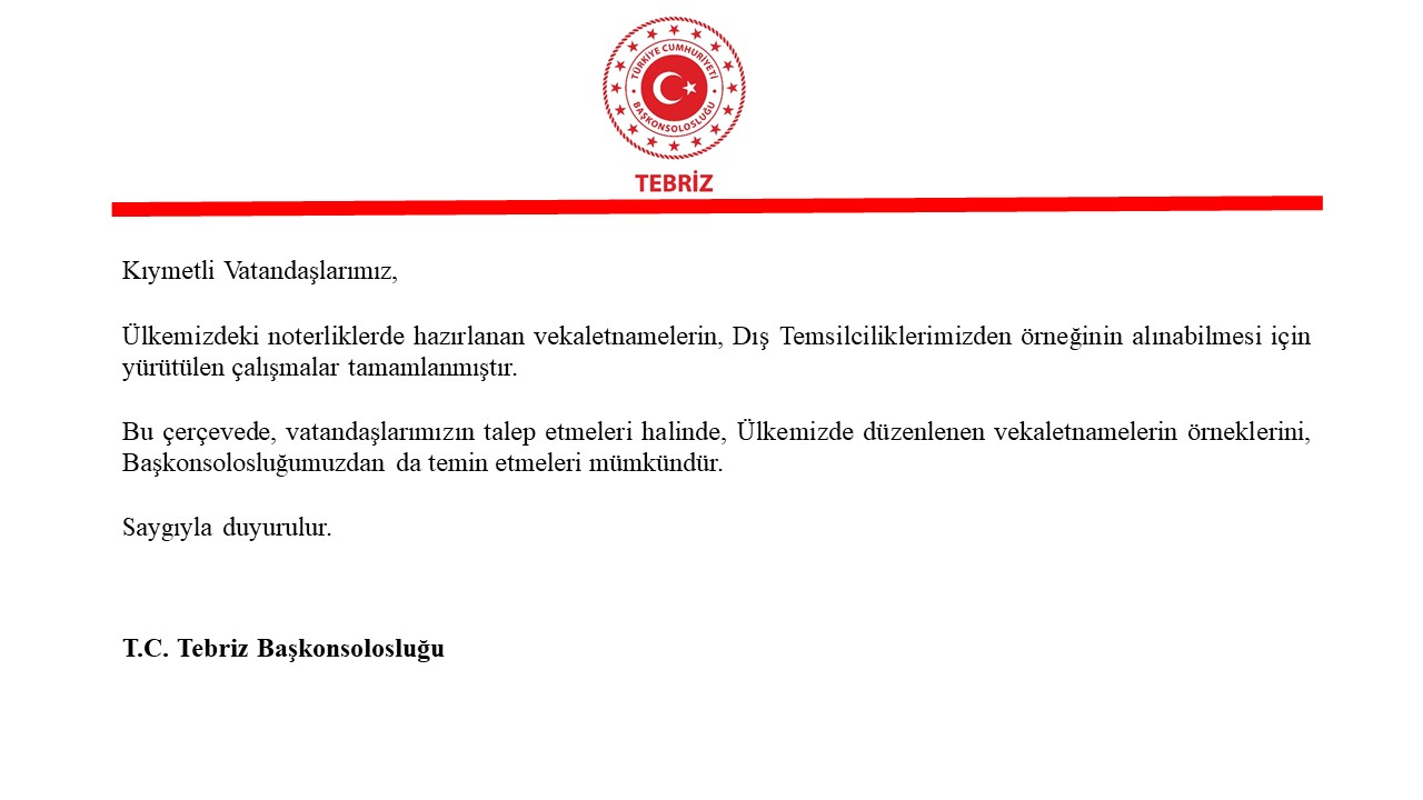 Ülkemizdeki Noterliklerde Düzenlenen Vekaletname Örneklerinin Dış Temsilciliklerimizden Alınabilmesine İlişkin Duyuru